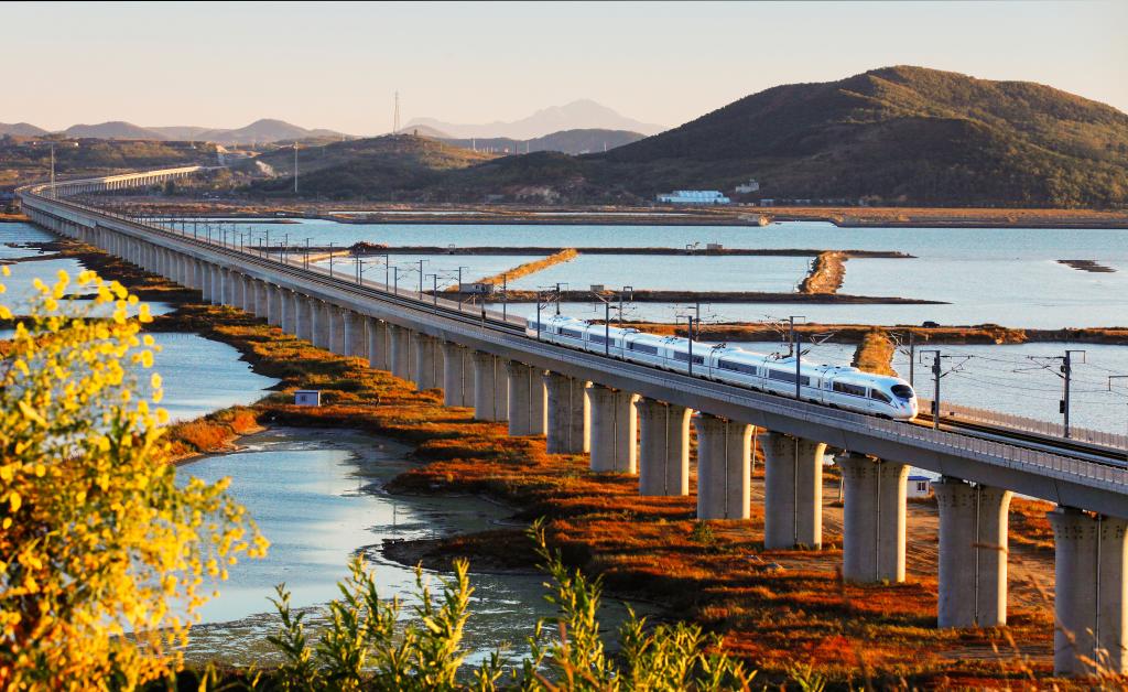 图片为高铁列车在哈大高铁线路上行驶。(中国铁路沈阳局集团有限公司供图)
