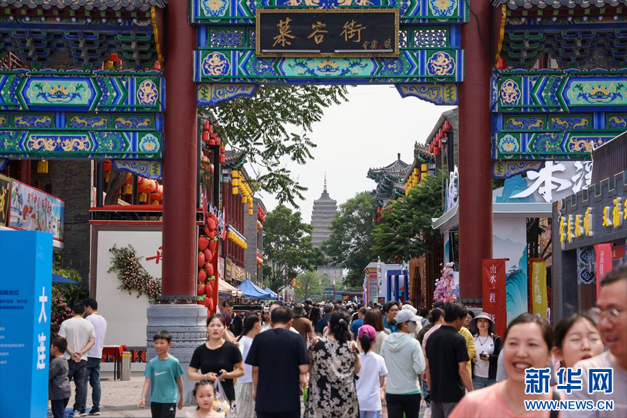 图为游客、市民行走在朝阳市慕容街上。新华网发
