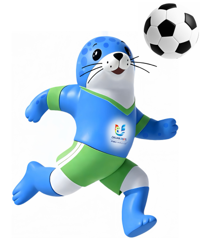 吉祥物“连宝·斑海豹”以斑海豹为原型设计,标志性的圆弧头型与斑点纹路极具辨识度,黑曜石般明亮的双眼灵动传神,与大学生足球运动员在赛场上的顽强毅力、拼搏激情交相辉映,淋漓尽致地展现出当代大学生的青春活力与进取精神。