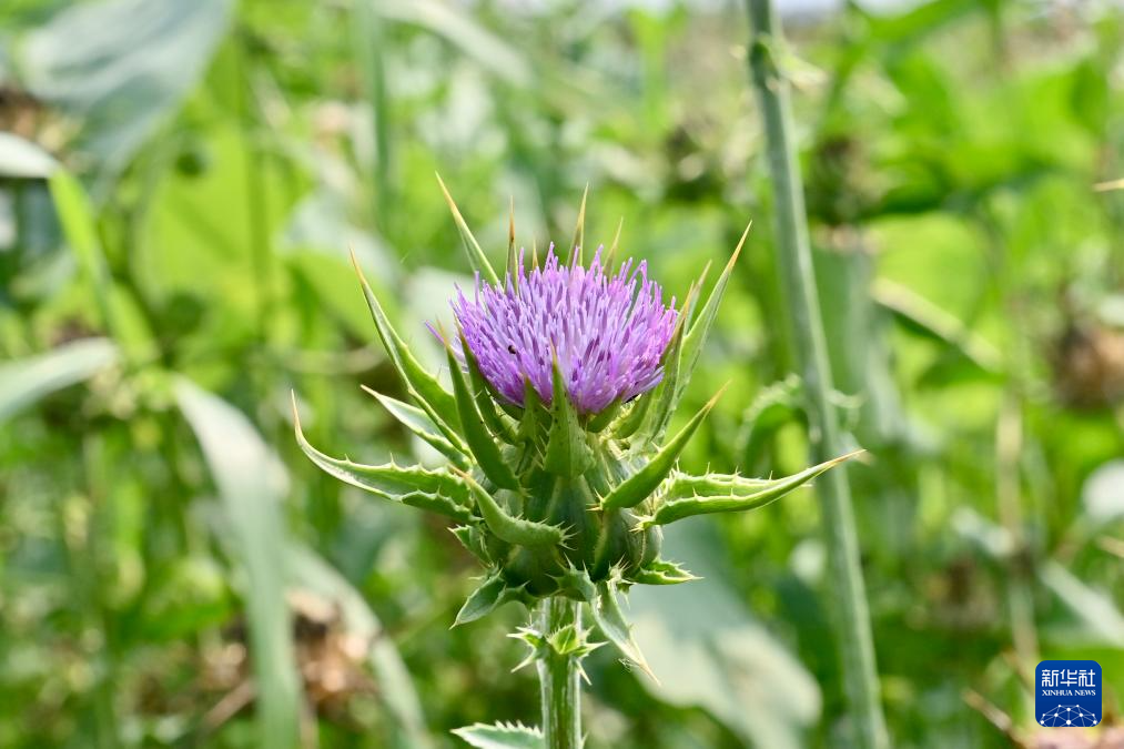 7月8日,一名种植户在查看水飞蓟成熟情况。