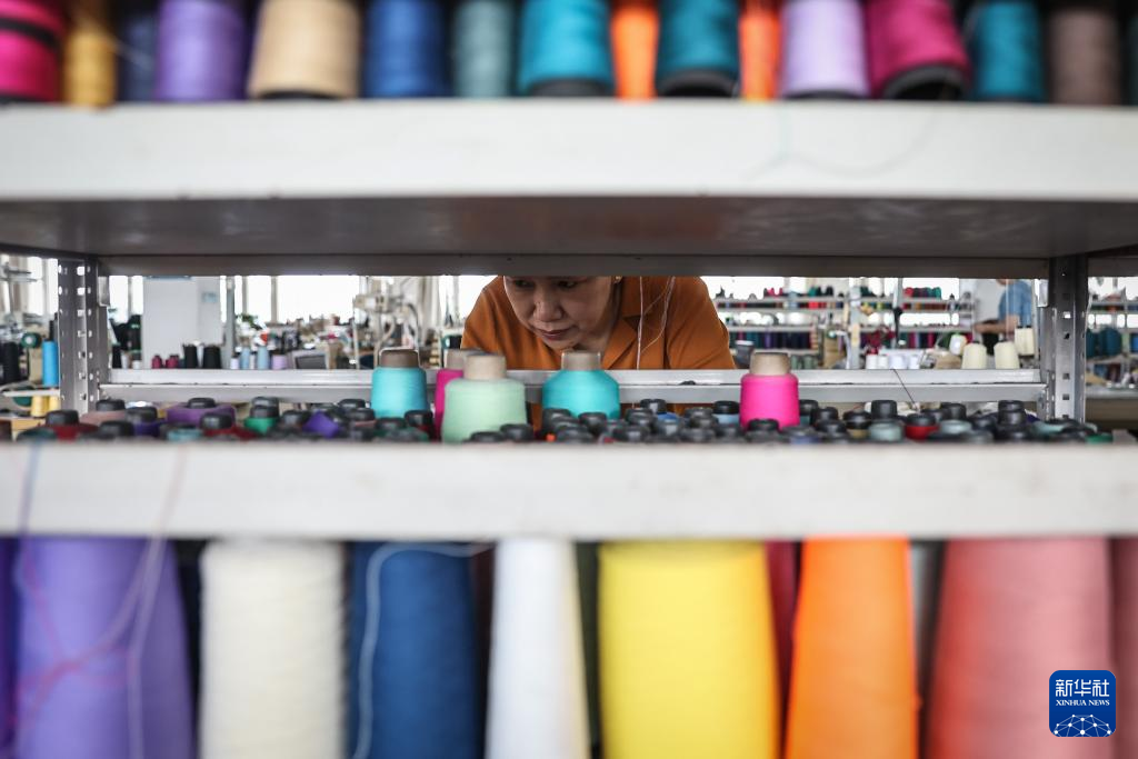 7月16日,工作人员在兴城三奇制衣有限公司的生产车间挑选材料。