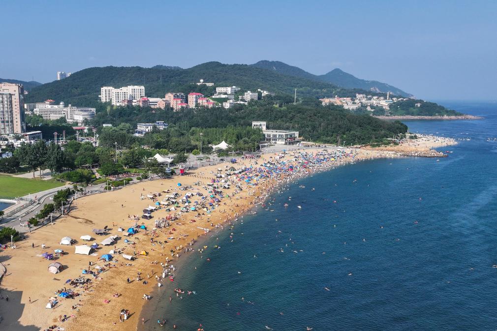 2025年7月10日拍摄的大连傅家庄公园海滨沙滩(无人机照片)。新华社记者 潘昱龙 摄