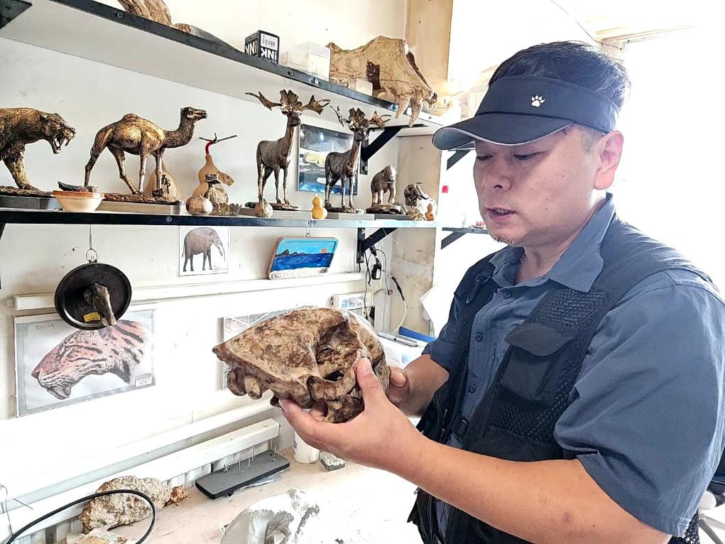 “出土的化石被大量泥土包裹,需要仔细清理和修复。”中国科学院古脊椎动物与古人类研究所骆驼山研究项目组技师刘虎介绍说,小心翼翼地清理后,他们还要对化石脆弱的部分进行加固和修复。
