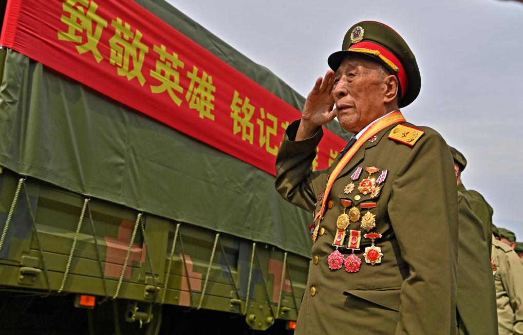 在沈阳抗美援朝烈士陵园,几位志愿军老兵唱起了《我的祖国》。他们用歌声迎接战友回家。